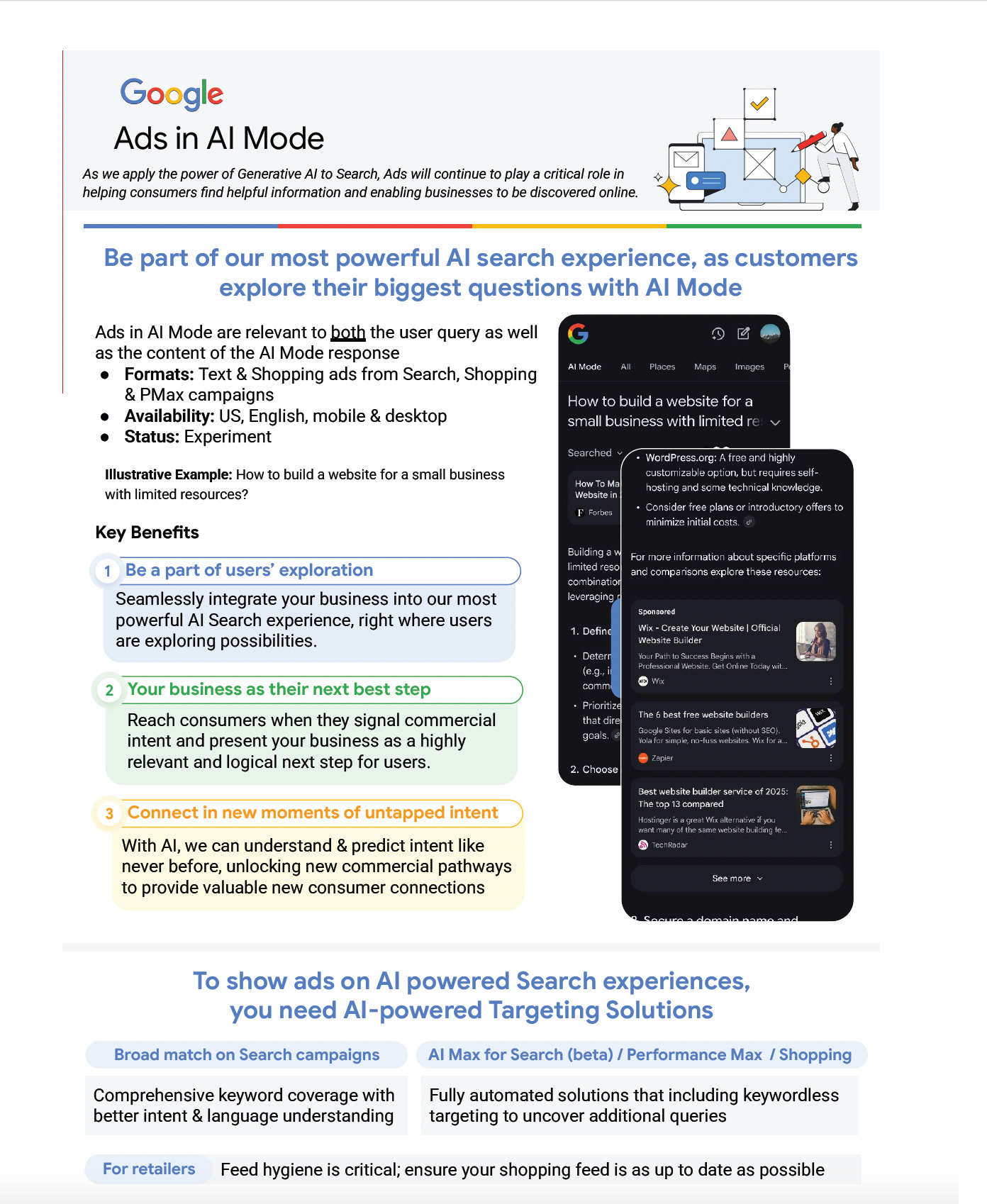 Si usas Performance Max o AI Max for Search, tus anuncios empezarán a mostrarse dentro del AI Mode.