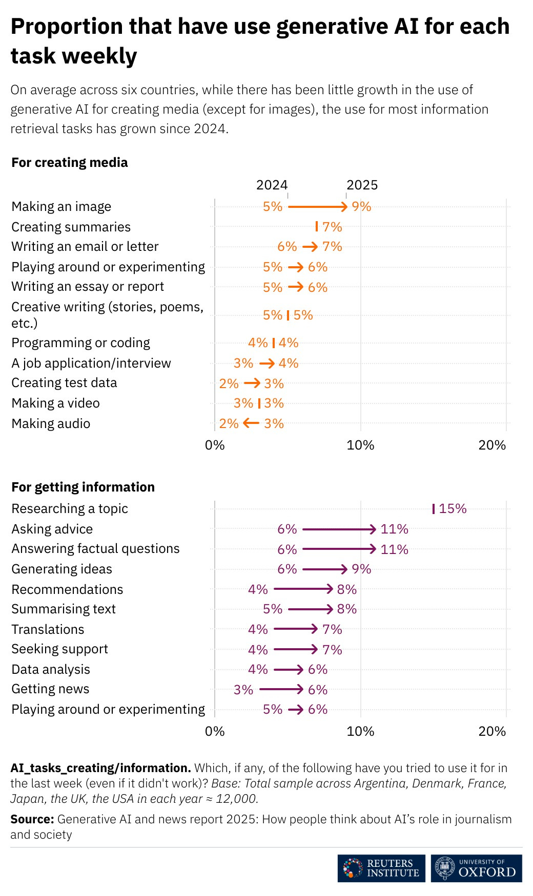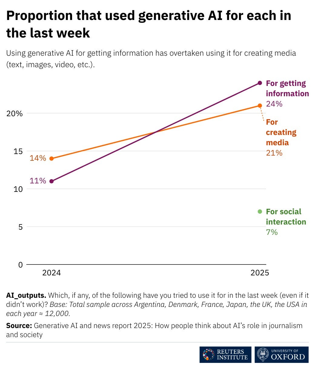 En este artículo, vamos a analziar el estudio “Generative AI and News Report 2025: How People Think About AI’s Role in Journalism and Society”, una fuente muy fiable, realizado por Reuters Institute y la Universidad de Oxford.