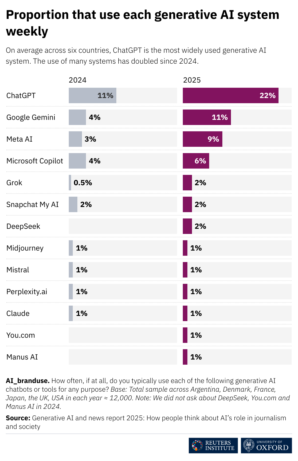 Y más gente que nunca lo usa así: el uso semanal de herramientas de IA casi se ha doblado en un año.