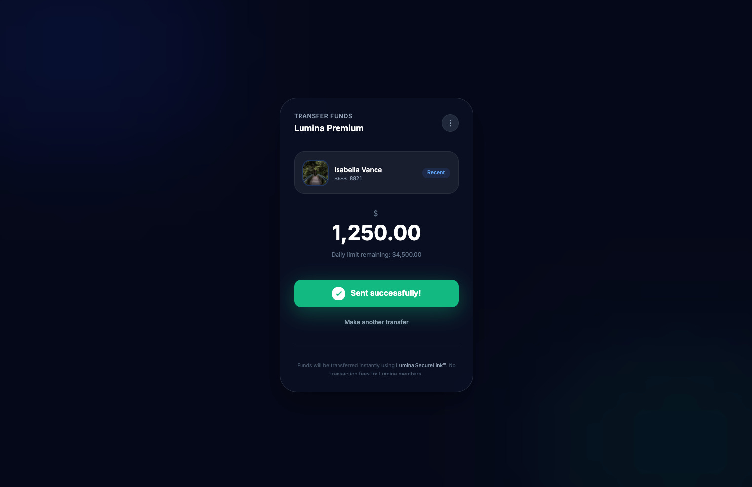 “Genera una microinteracción creativa para un botón de ‘Enviar fondos’ en una aplicación bancaria. Incluye: trigger (clic), efectos animados suaves (que transmitan sensación premium), intención emocional (que se sienta humano). Hazlo práctico para una web app moderna. Genera el código.”