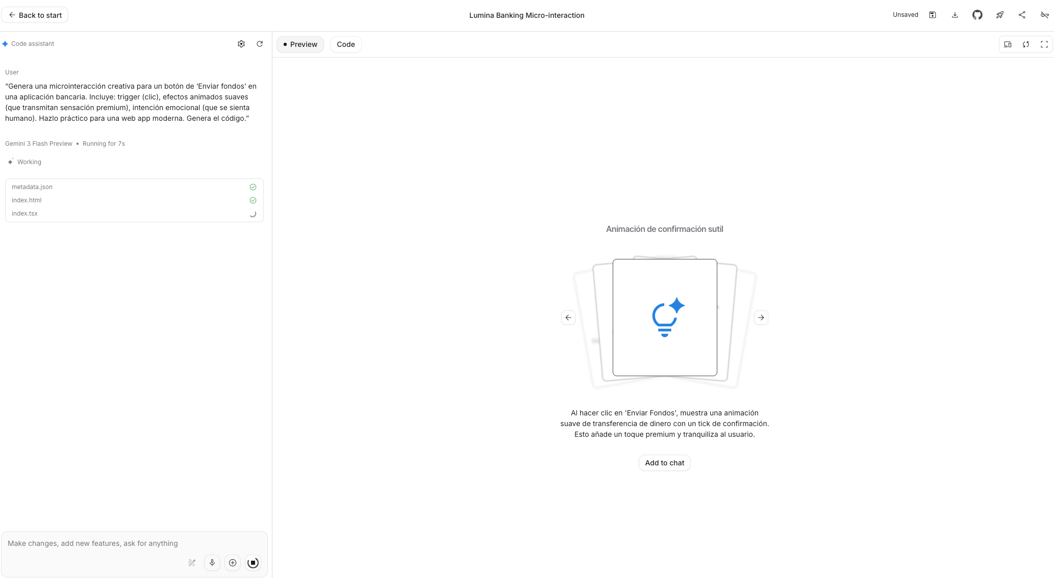 El resultado es una animación funcional con estados de carga, confirmación visual y feedback emocional. ¿La puedes usar tal cual en producción? Probablemente necesite ajustes. Pero como referencia para tu equipo de desarrollo, como demo para un cliente o como prueba de concepto para validar una dirección creativa, vale oro.