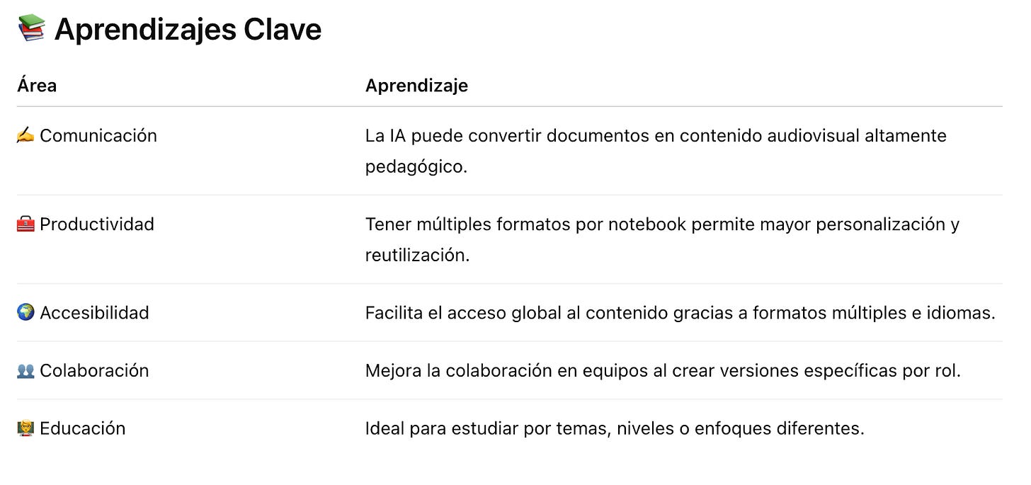 Compartir notebooks públicos multiformato (ej. distintos audios por idioma o función).